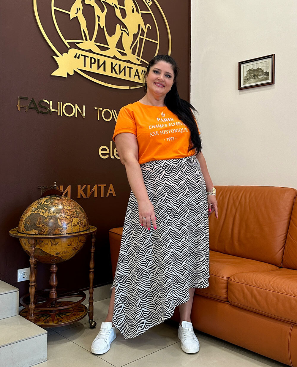 Легкая юбка свободного кроя с геометрическим принтом на застежке-молнии. Не требует особых сочетаний.