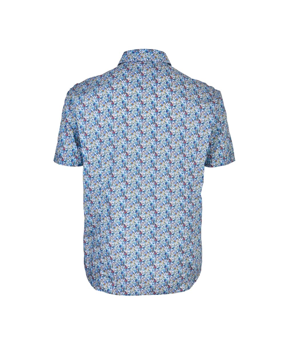 Мужская рубашка с коротким рукавом, с оптическим принтом в голубых тонах.