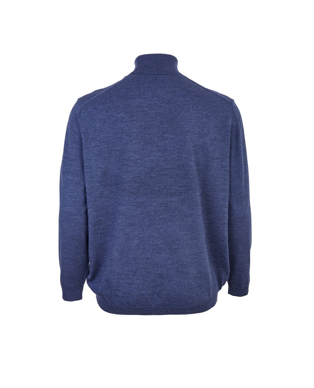 Гольф синего цвета из гладкого, высококачественного материала, в состав которого входит шерсть. Прямой крой, высокая, отложная горловина на резинке. Манжеты и низ гольфа на резинке