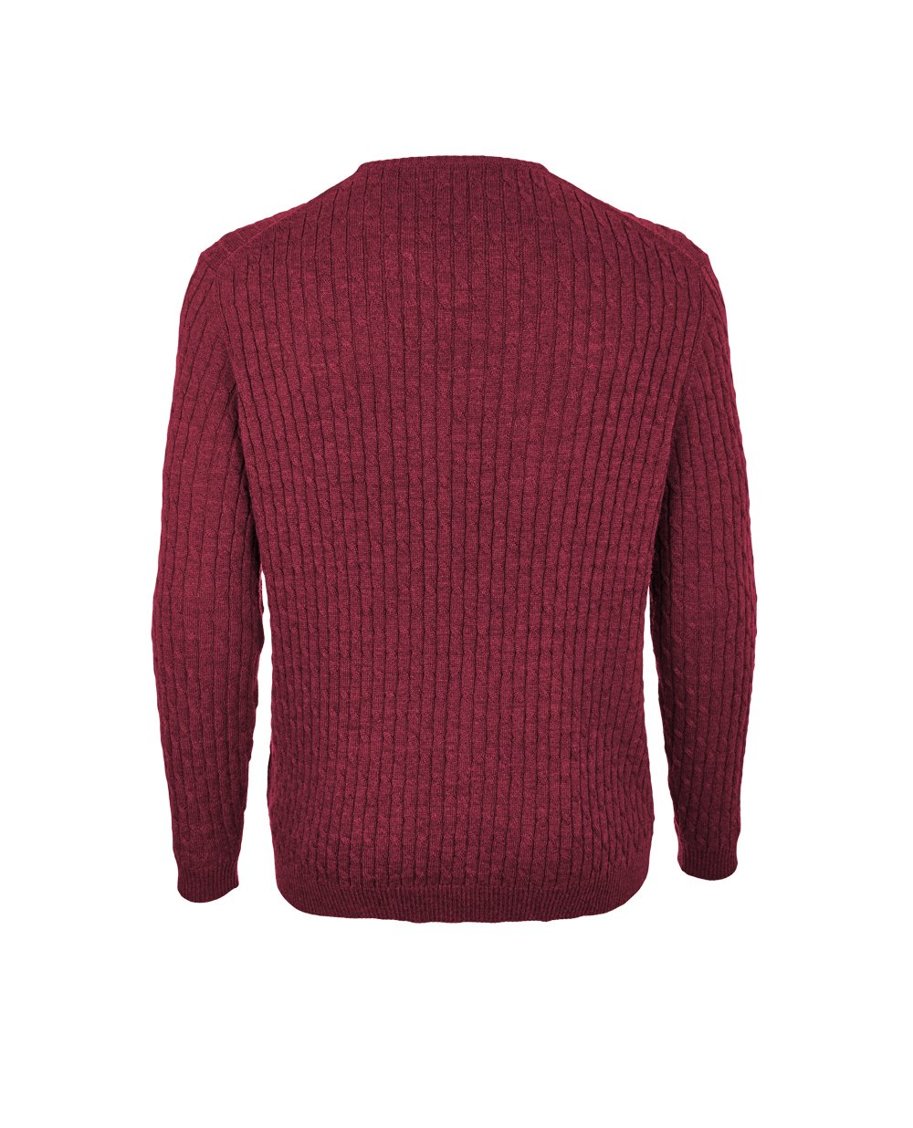 Красный шерстяной джемпер фактурной вязки. Особенности модели: прямой крой, круглый вырез горловины. Манжеты рукавов и низ изделия на резинке