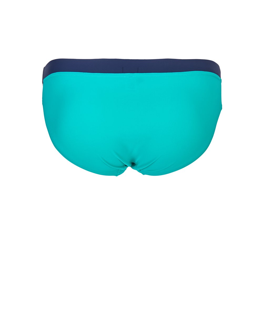 Мужские плавки голубого цвета. Пояс на эластичной резинке контрастного темно-синего цвета. Ткань тонкая, эластичная.