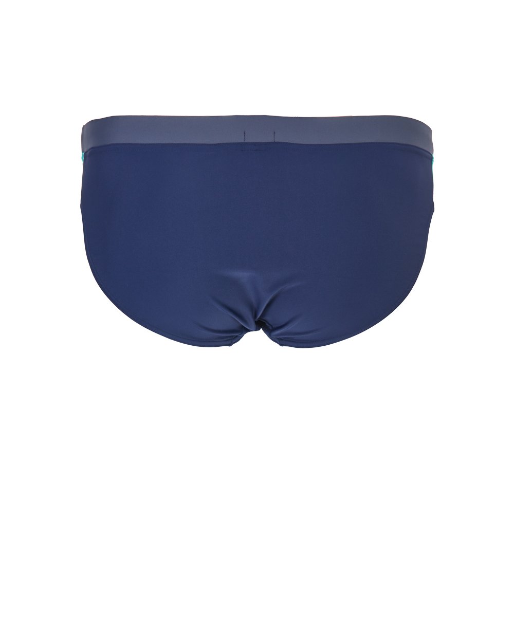 Мужские плавки темно-синего цвета. Пояс на эластичной резинке контрастного серого цвета.