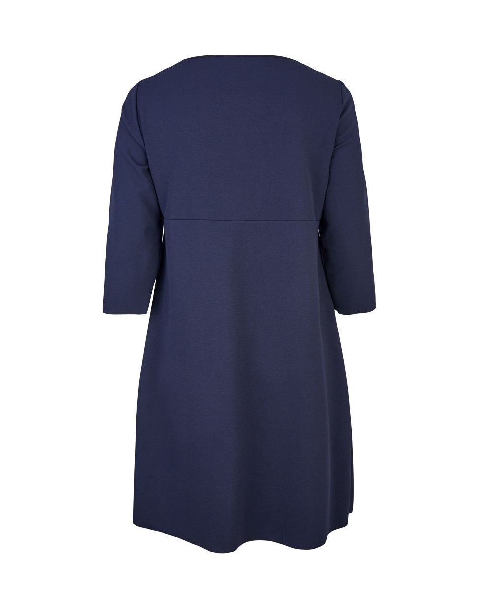 Платье из коллекции итальянского бренда Elena Miro. Модель от линии талии расклешённая, выполнена из плотного материала синего цвета. Круглый вырез горловины, рукав 3/4. В комплект входят две съёмные броши. Длина изделия 107 см в 47 размере.