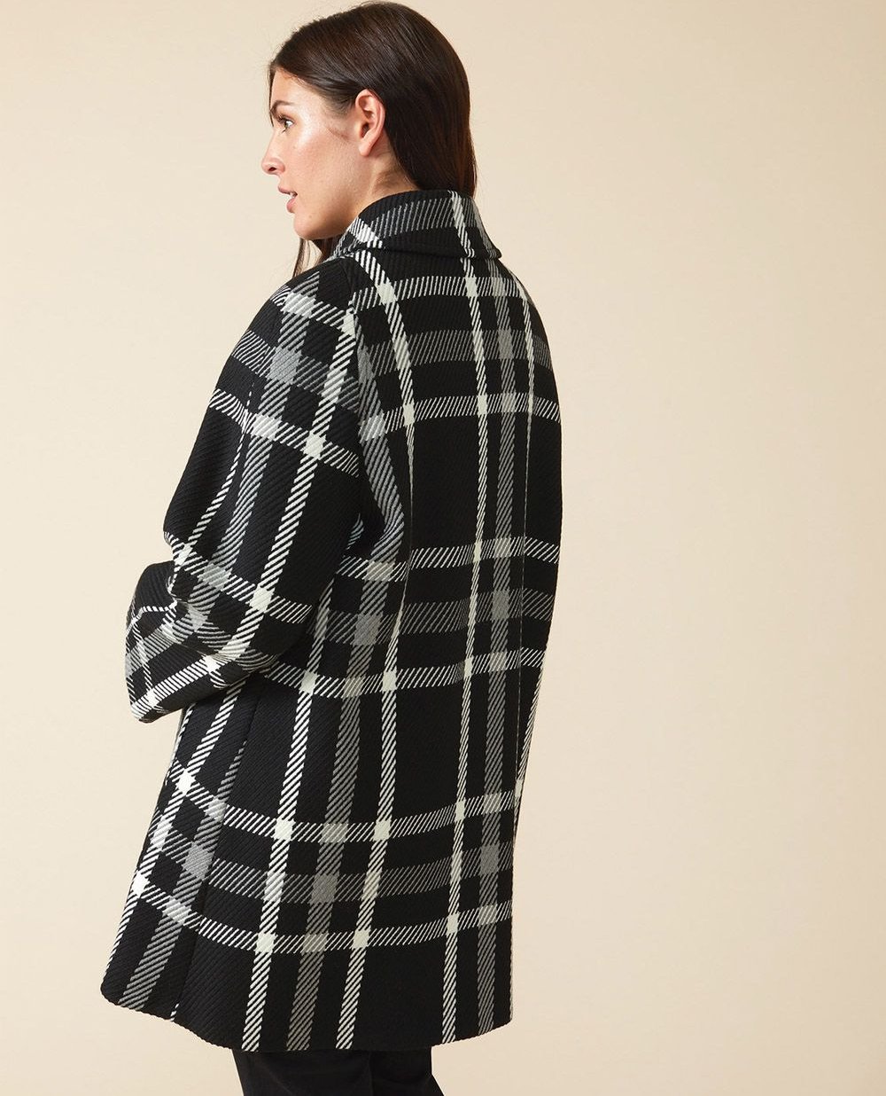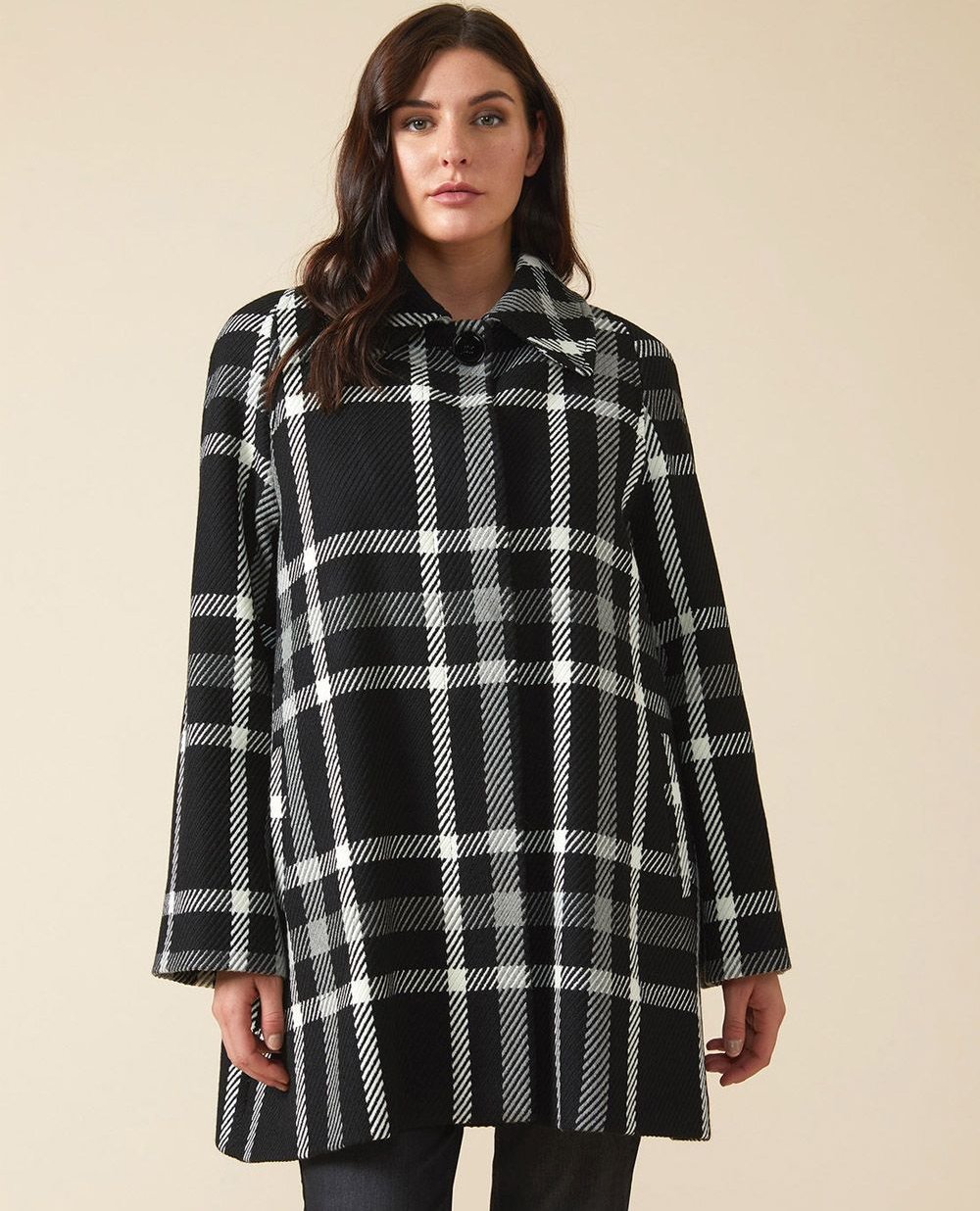 Шерстяное пальто с принтом английская клетка на подкладке. Модель свободного трапецивидного силуэта. Застежка на пуговицах, отложной воротник, втачной рукав. Длина пальто 85см в размере 43.