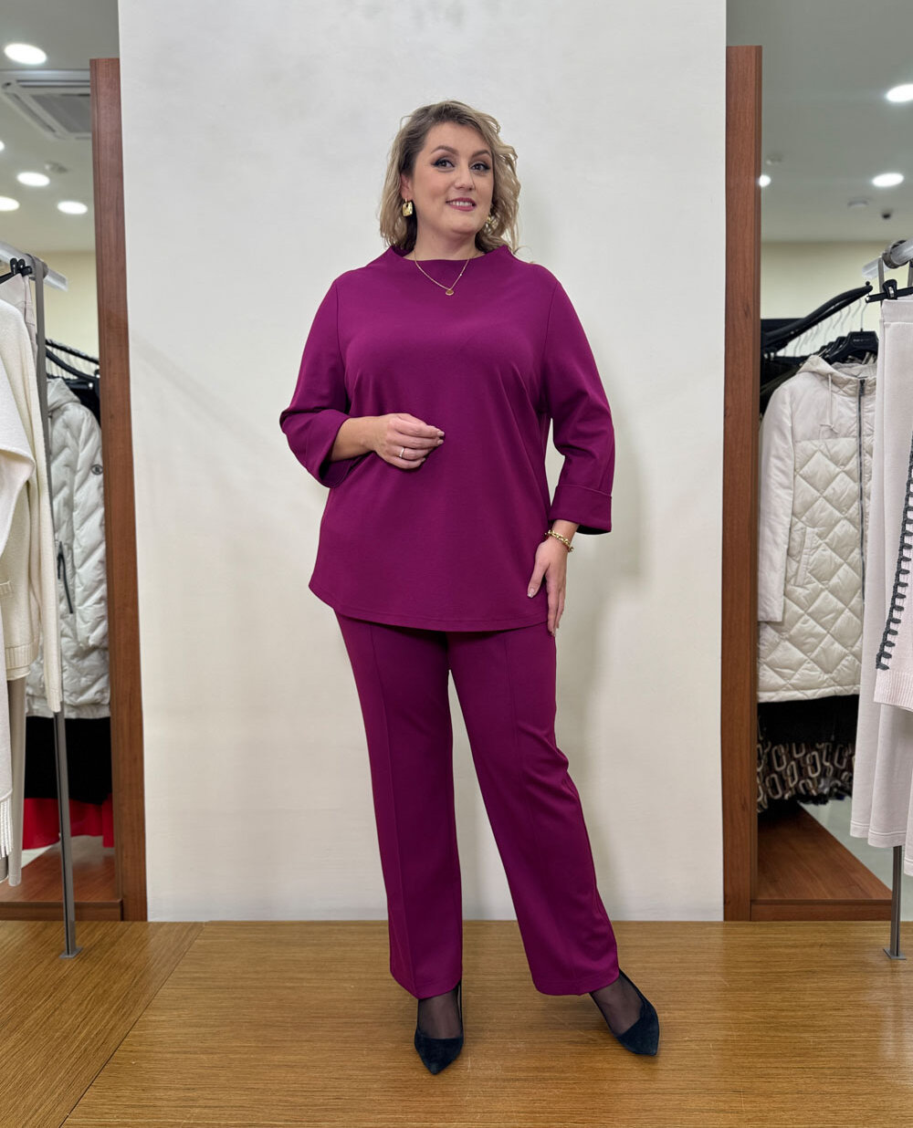 Здесь всегда можно подобрать ансамбль из блузы и юбки или брюк, выбрать яркое праздничное платье, модное пальто или теплый кардиган. Модельный ряд характеризуется наличием: