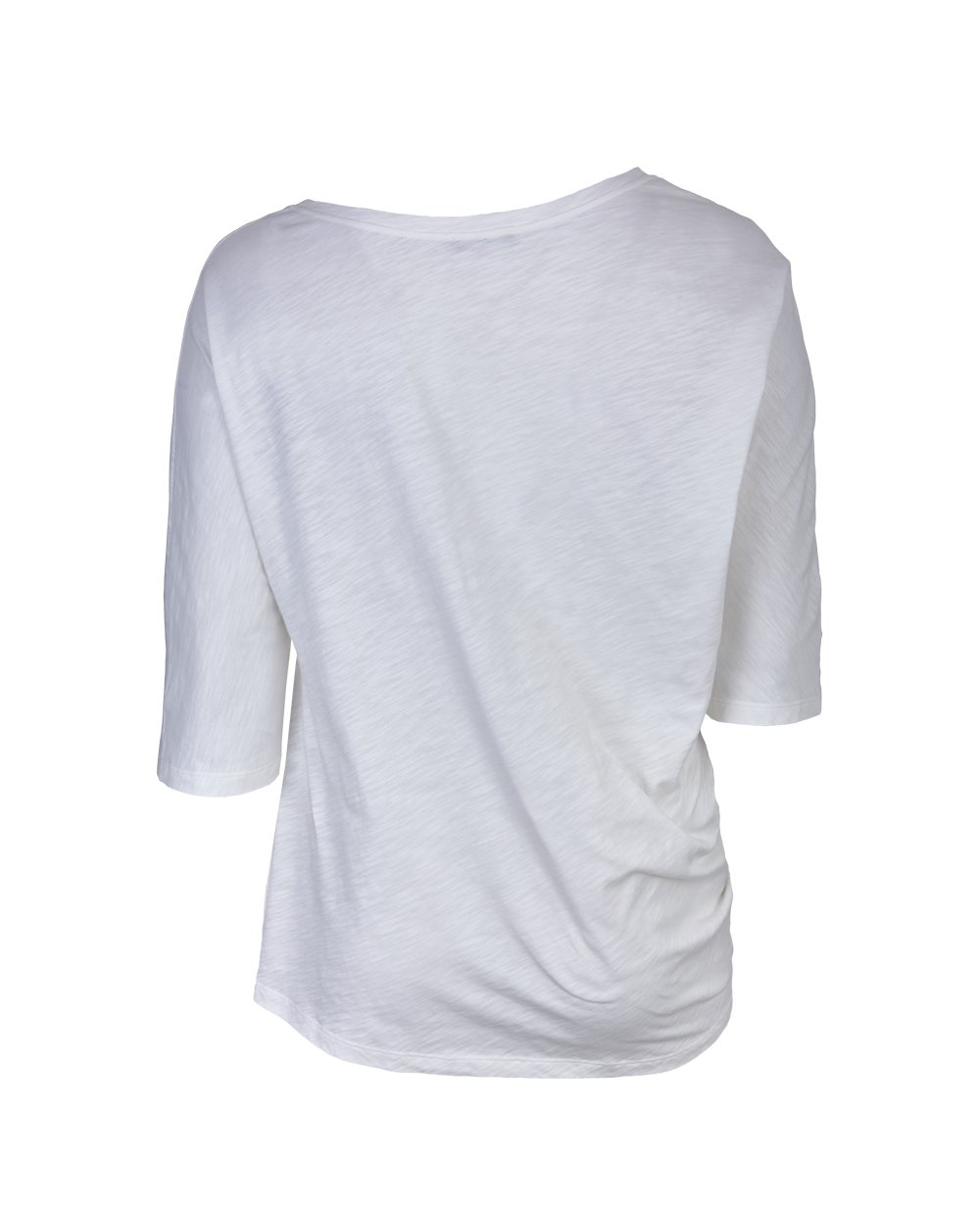 Хлопковая футболка с рукавом на одно плечо и контрастным принтом. Легко сочетается с джинсами и брюками.