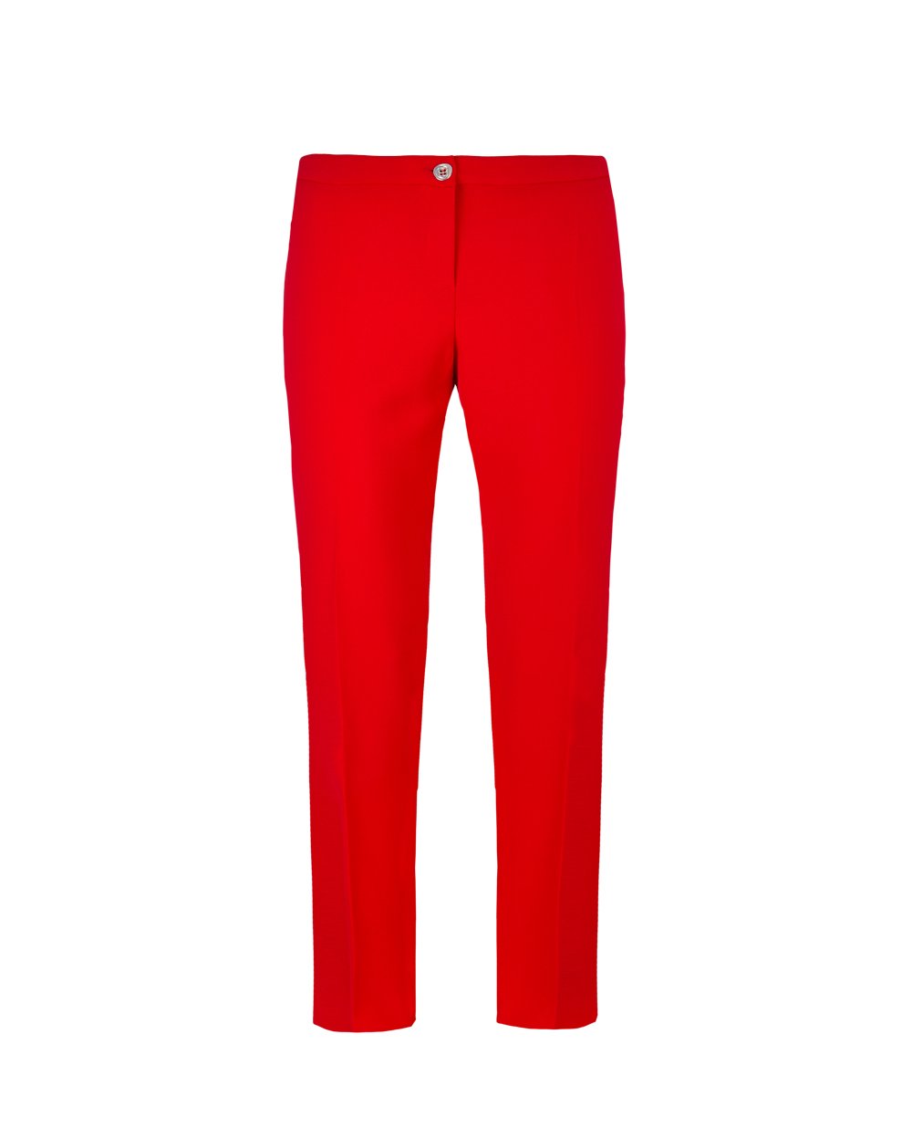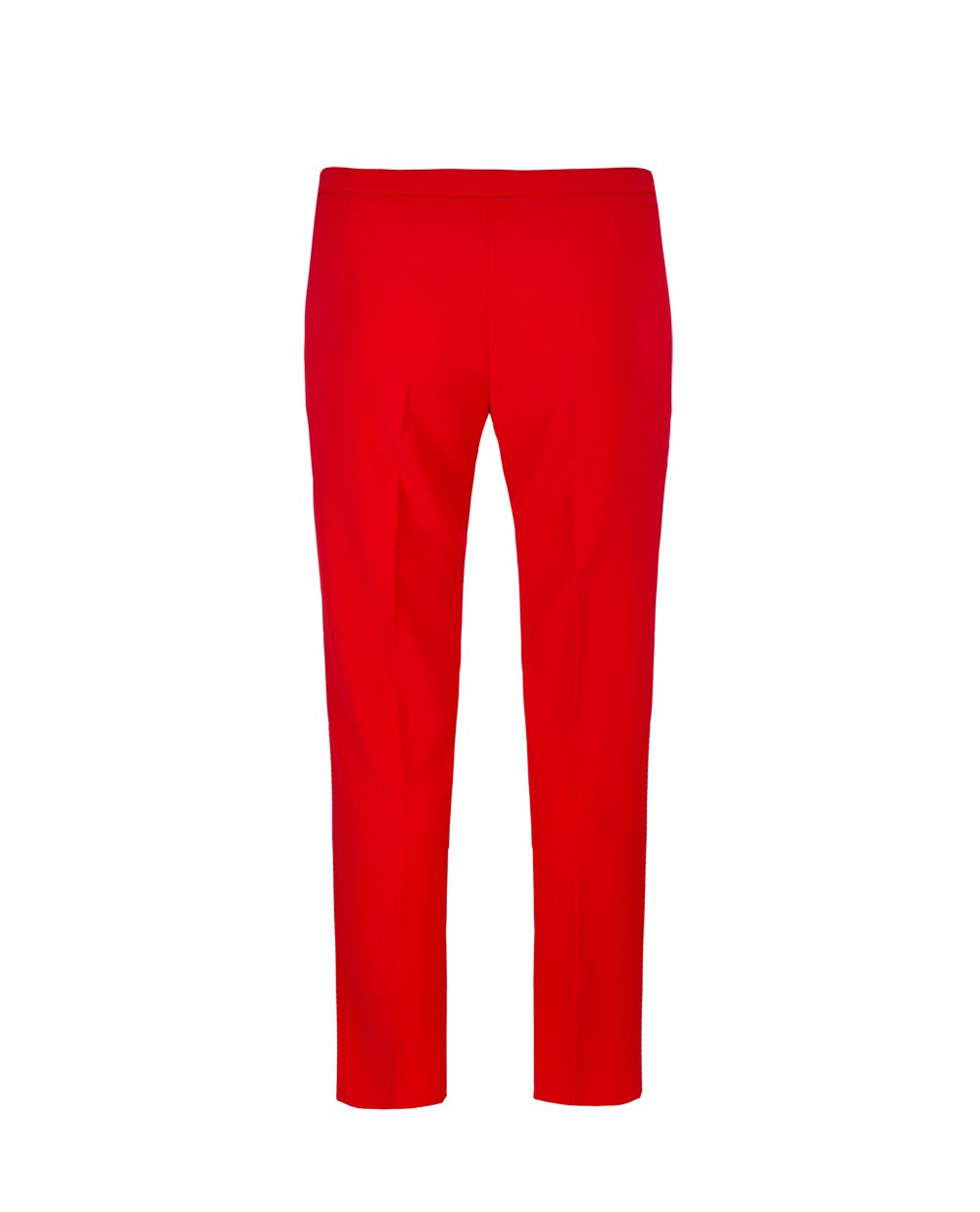 Брюки Elena Miro красного цвета прямого силуэта. Посадка на талии, линия верха дополнена однотонным поясом с застежкой на молнию и пуговицу по центру. В 43 размере длина брюк 112 см.