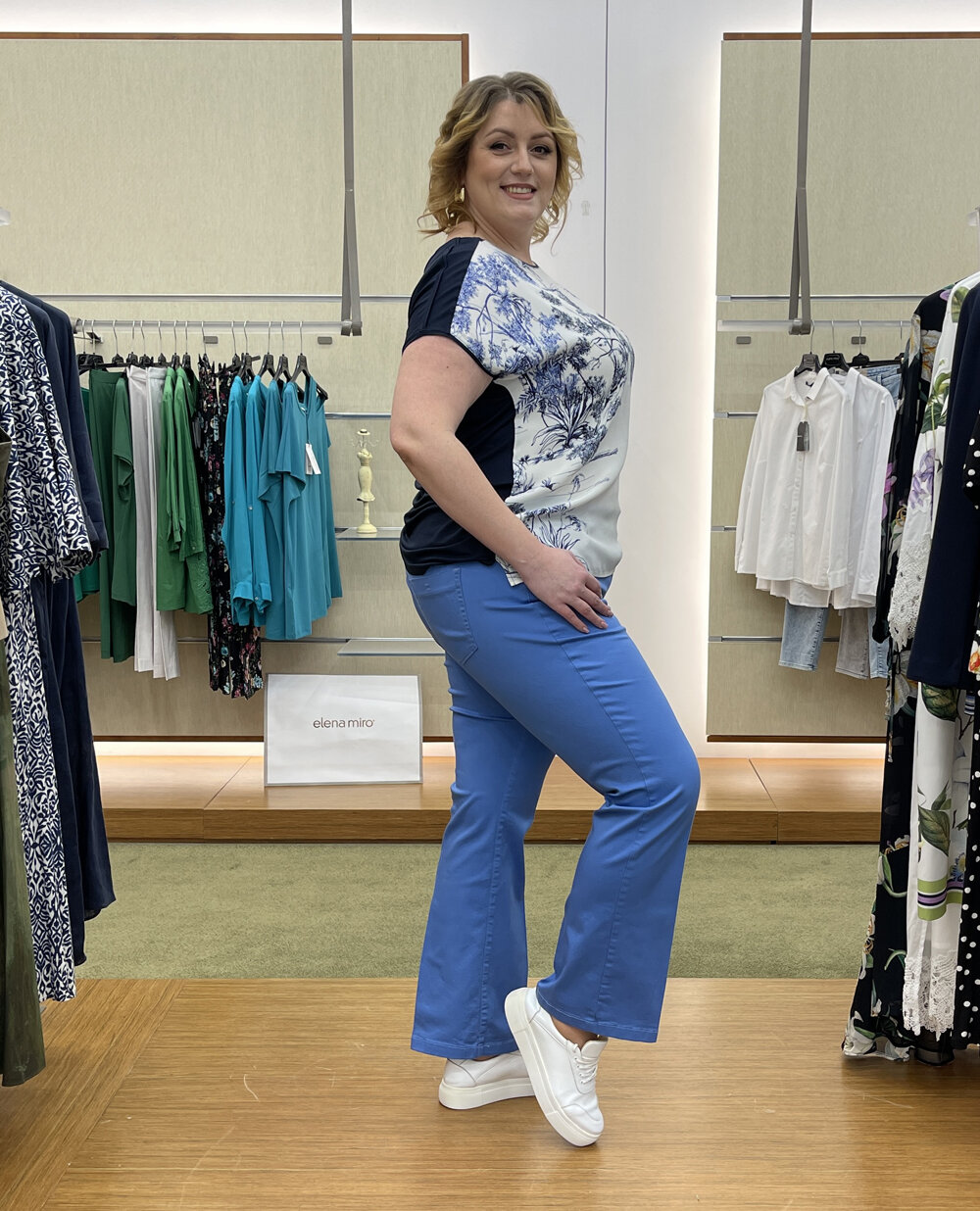 | Брюки Elena Miro из органического хлопка 98%, хлопок 2% эластан. Модель прямого кроя с еффектом Push-up, стандартная линия талии, два накладных кармана, застёгивается на пуговицу и потайную молнию. Замеры в 41 размере ( 50 украинский) полуобхват талии 48 см., полуобхват бёдер 54см., длина 103 см. |
