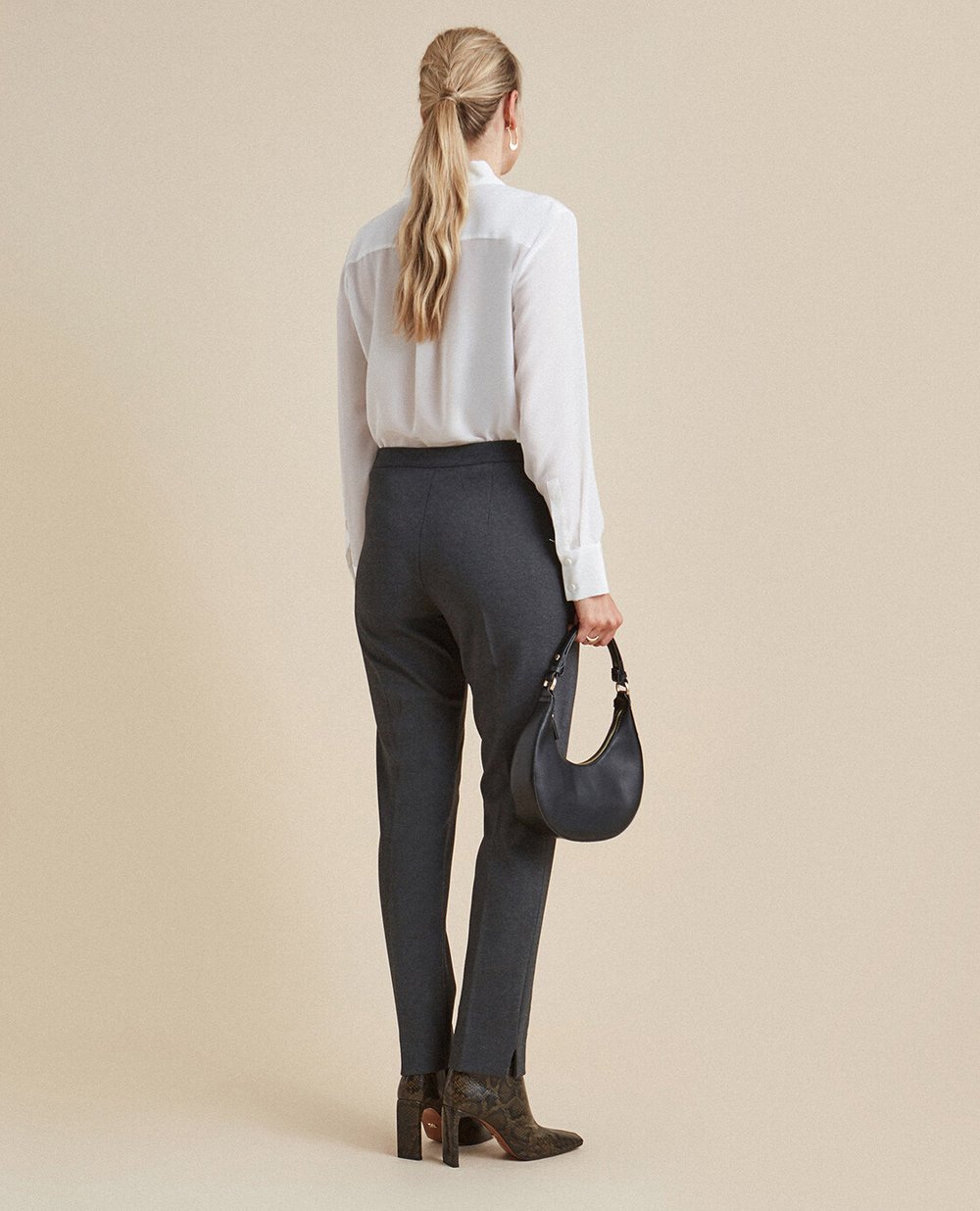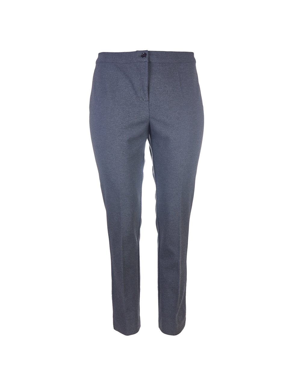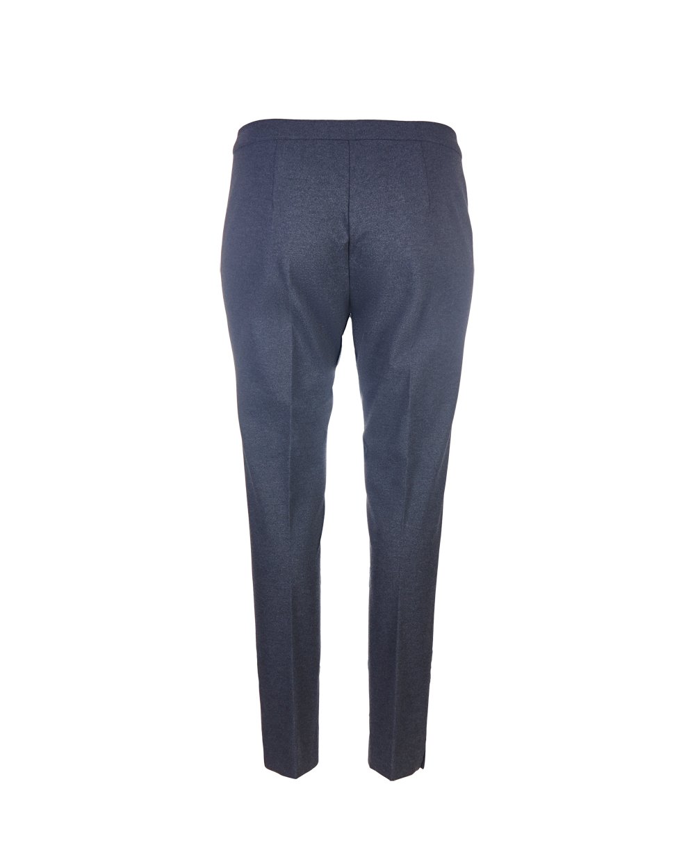 Брюки трикотажные с высокой посадкой. Модель зауженная к низу, внизу по бокам разрезы, сзади модель с выточками. Длина в размере 45 - 106 см, полуобхват бедер 69 см, полуобхват талии 52 см