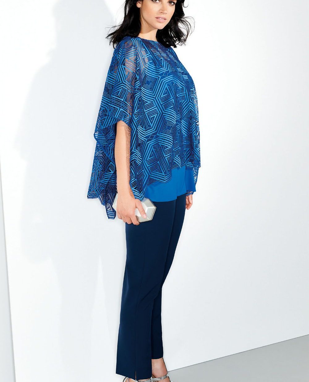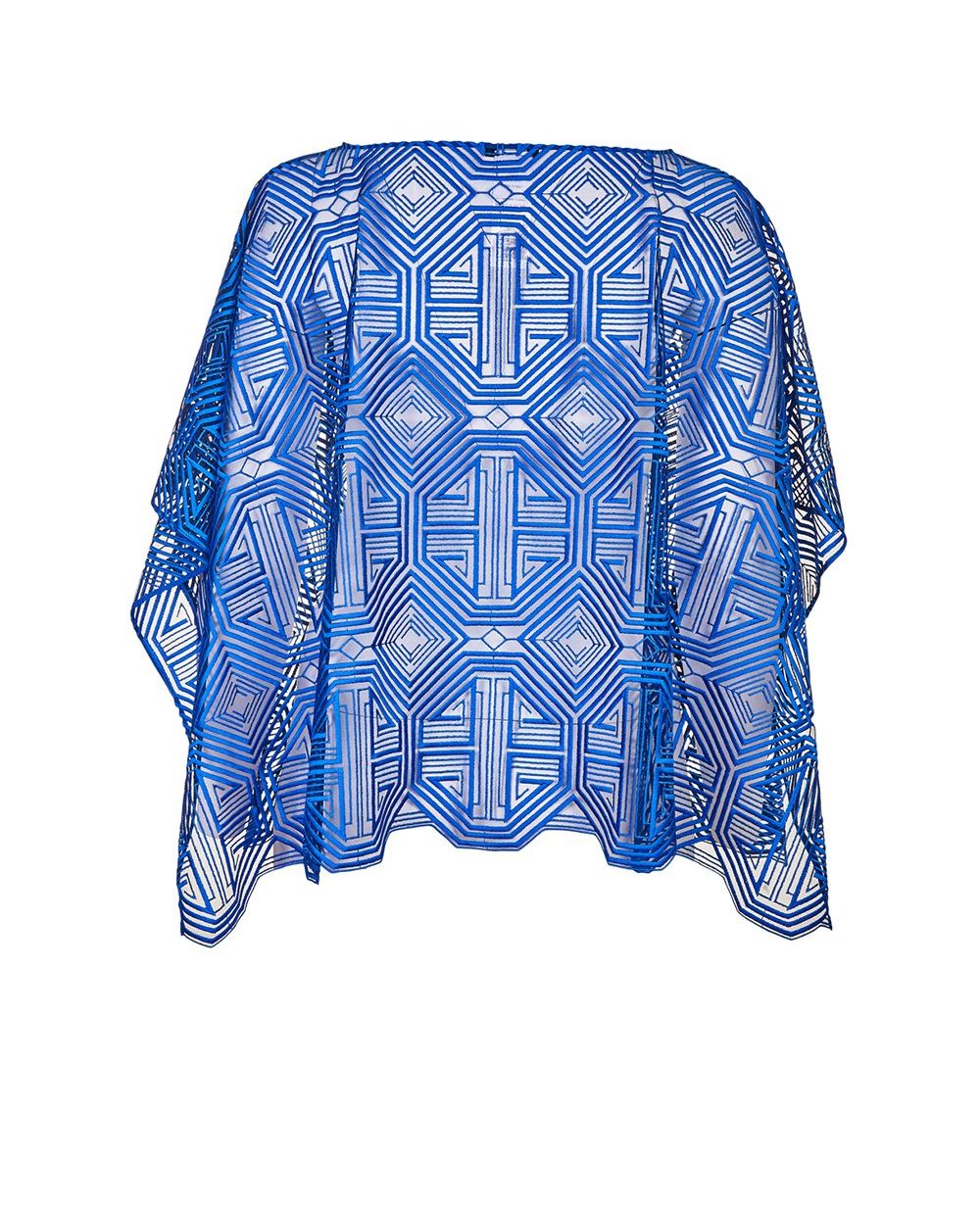 Накидка с геометрической вышивкой, кайма по низу. Модель типа накидка-пончо. Отлично сочетается с топом и брюками из шифона.