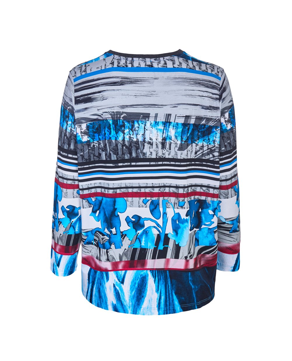 Пуловер свободного кроя из высококачественной вискозы с комбинированным принтом. V-образный вырез горловины, длинные рукава. Длина в 52 размере 81 см.