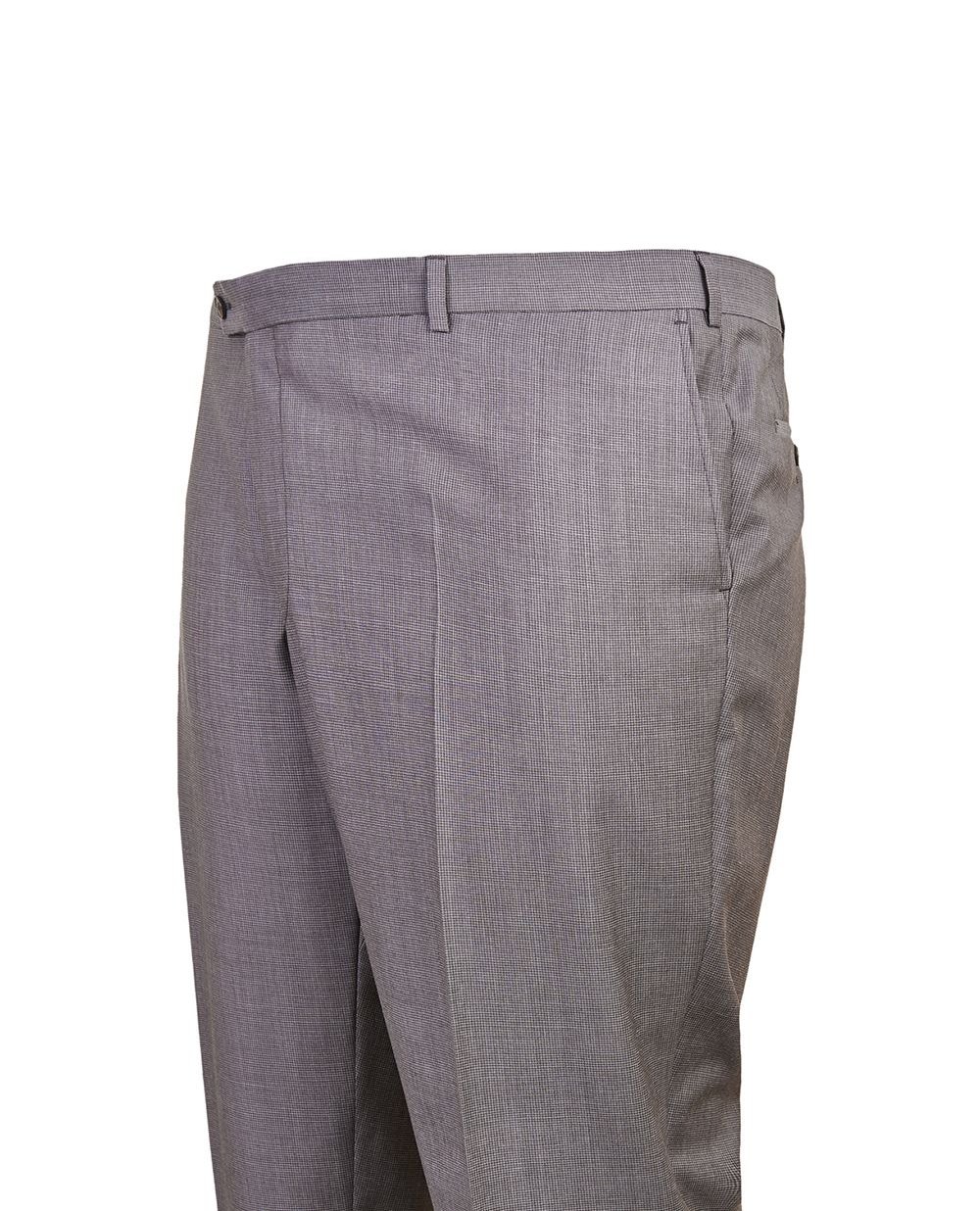 Классический костюм бежевого цвета. Однобортный пиджак с двумя пуговицами, два кармана с клапаном, нагрудный карман в рамку, две шлицы. Зауженные брюки, два боковых кармана.