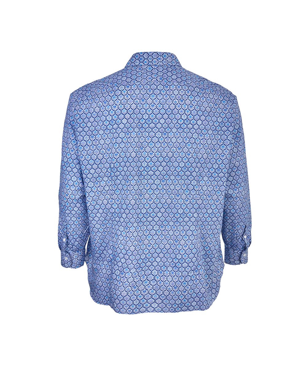 Хлопковая рубашка итальянского бренда Mastai Ferretti, тонкая, шелковистая. Слегка приталенного силуэта, обладает холодящими свойствами, модный принт на рубашке.